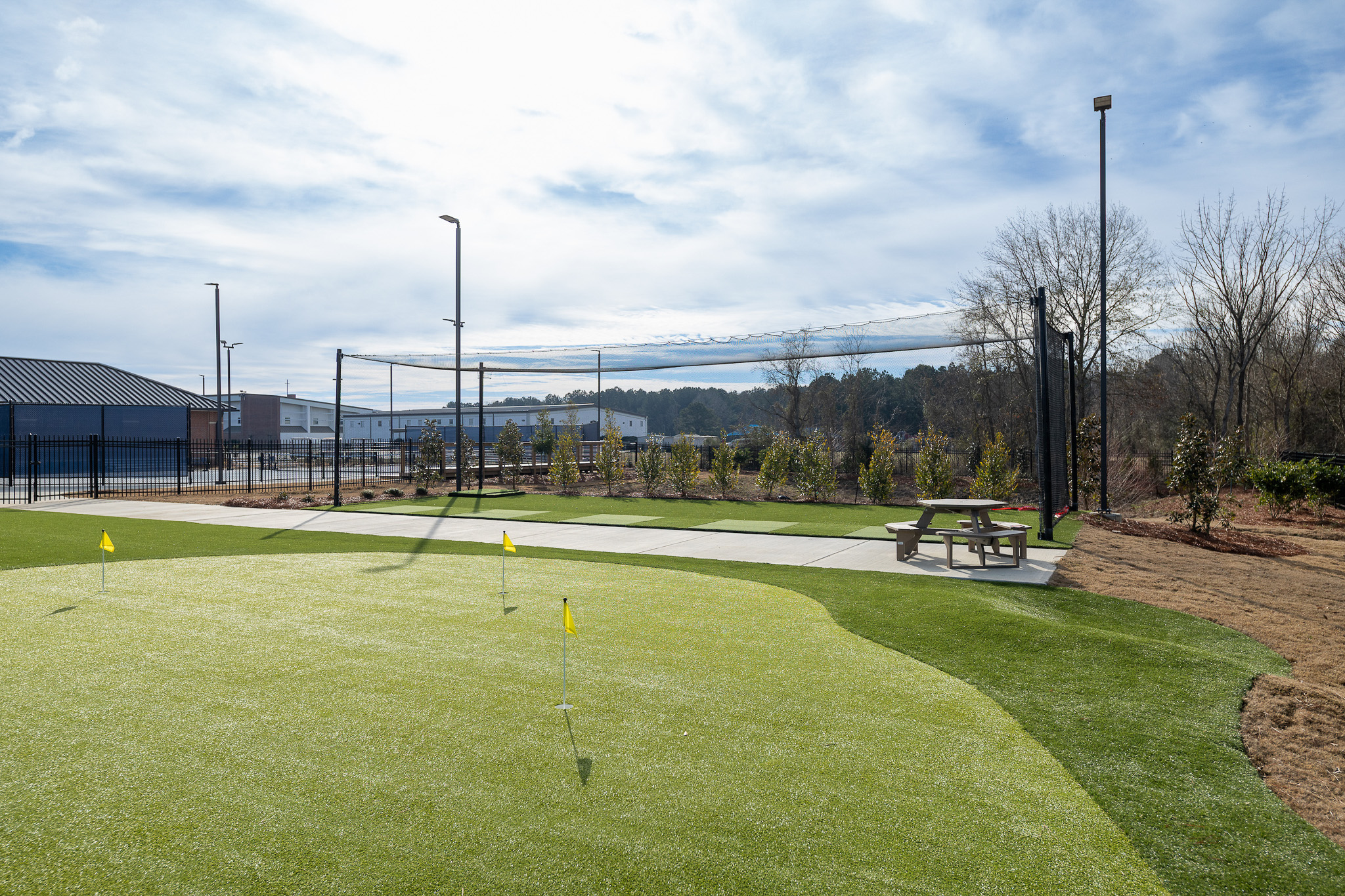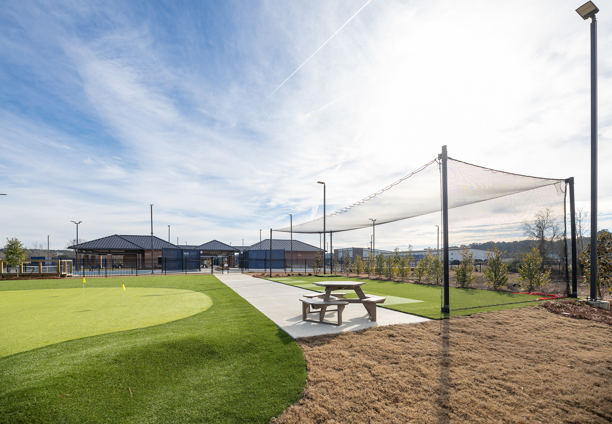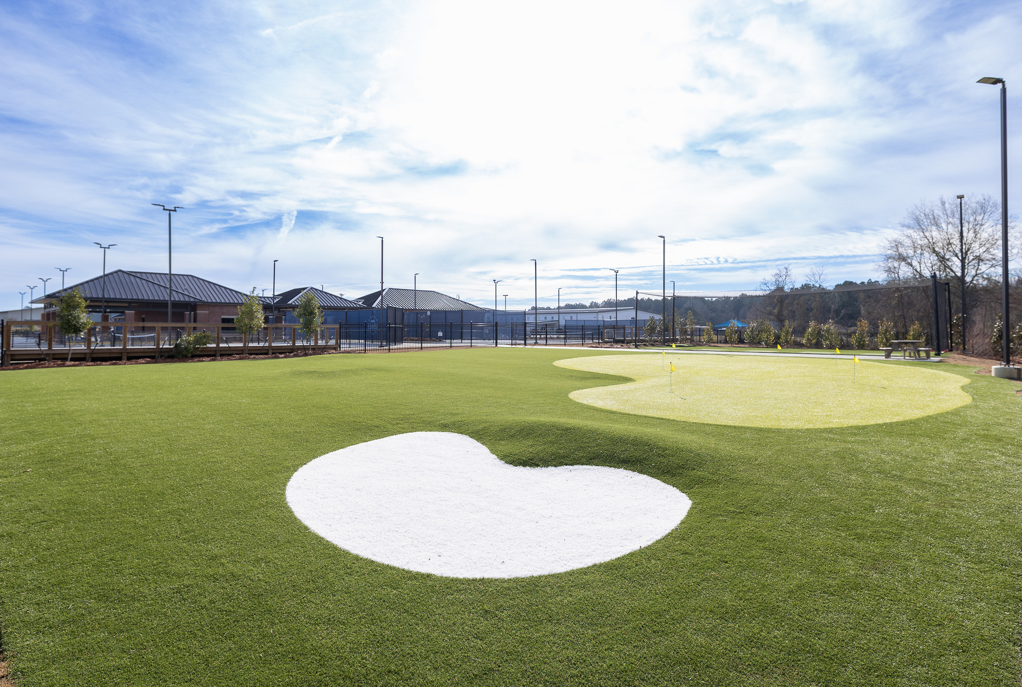 The inclusion of a driving range and custom putting green further expands the facility, reinforcing its role as a multi-sport destination.